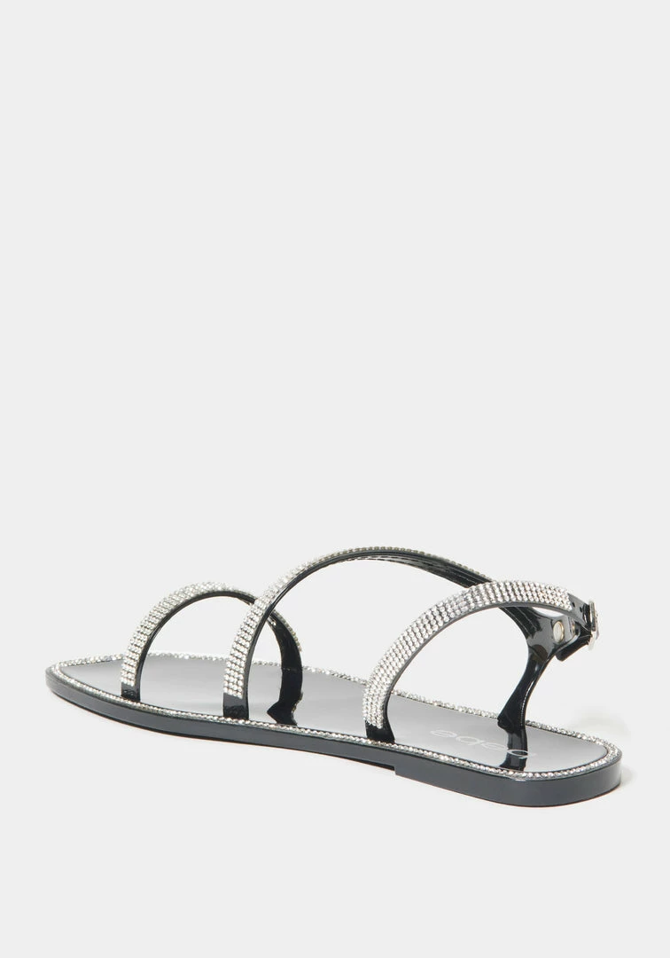Throw on the Jillie slides to complete your casual look! Featuring rhinestone details, a flat heel, and ankle closure.