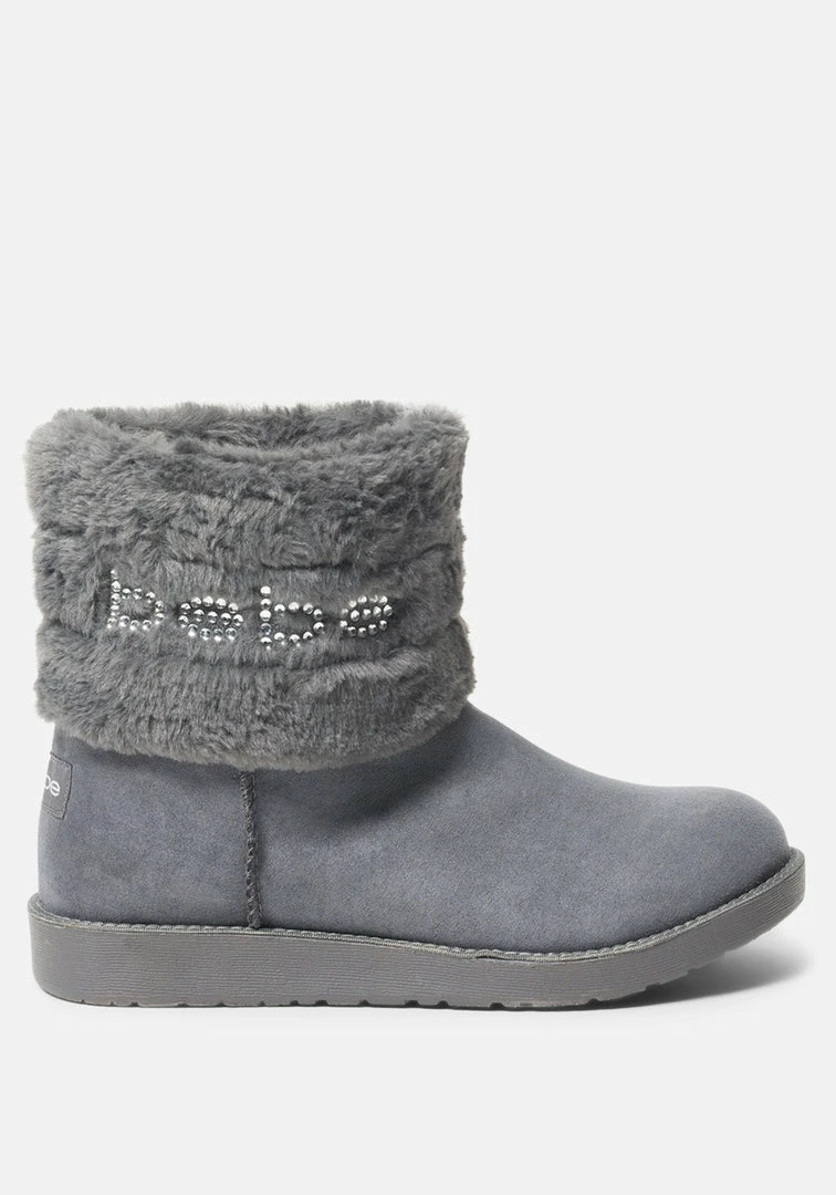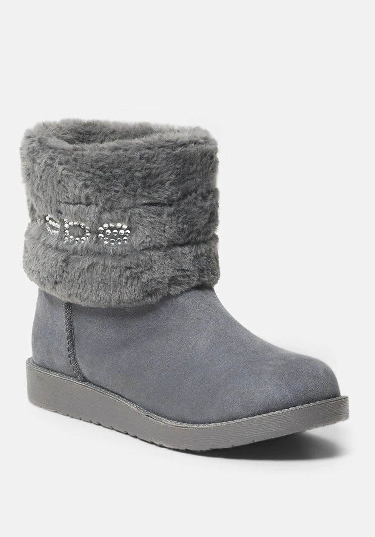 - Upper: High-quality imitation suede and faux fur; Outsole: 100% Synthetic