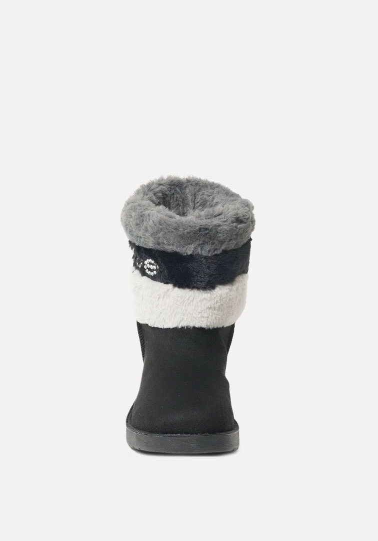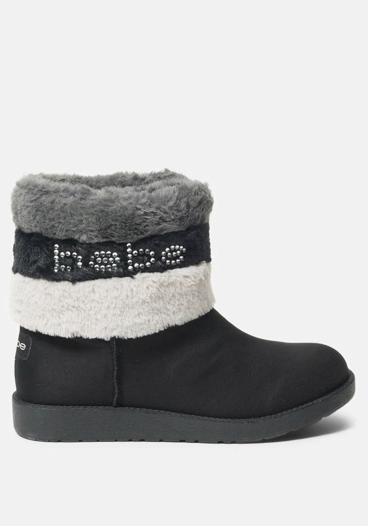 - Upper: High-quality imitation suede and faux fur; Outsole: 100% Synthetic