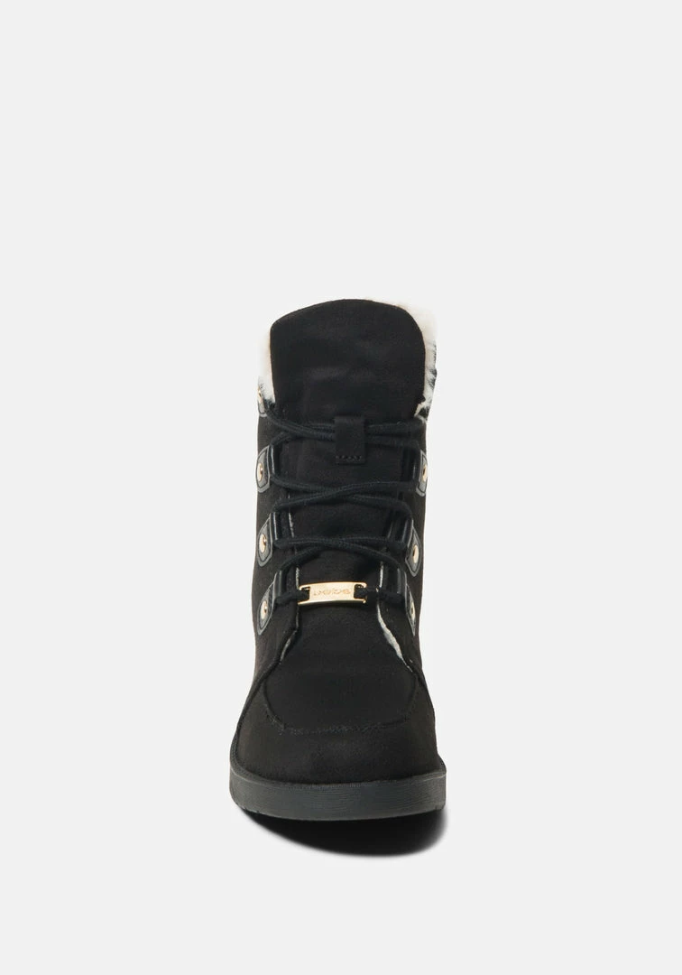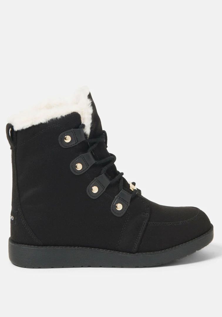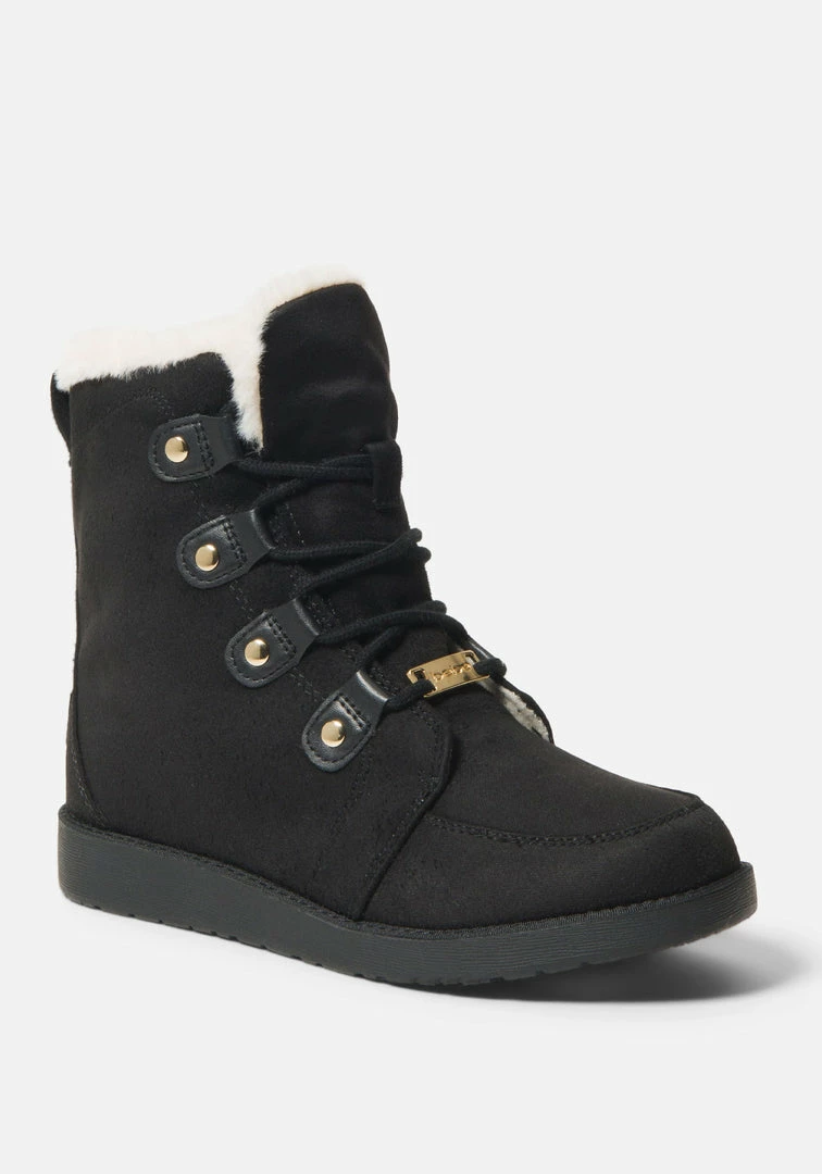 Faux fur warms the inside of these trendy boots designed for cold-weather days and nights.
