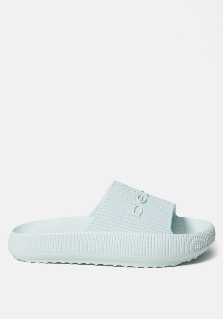When it comes to these sandals, comfort is key. The slip-on style is made with a cushy material, while an embossed Bebe logo on the strap lends a hint of eye-catching appeal.