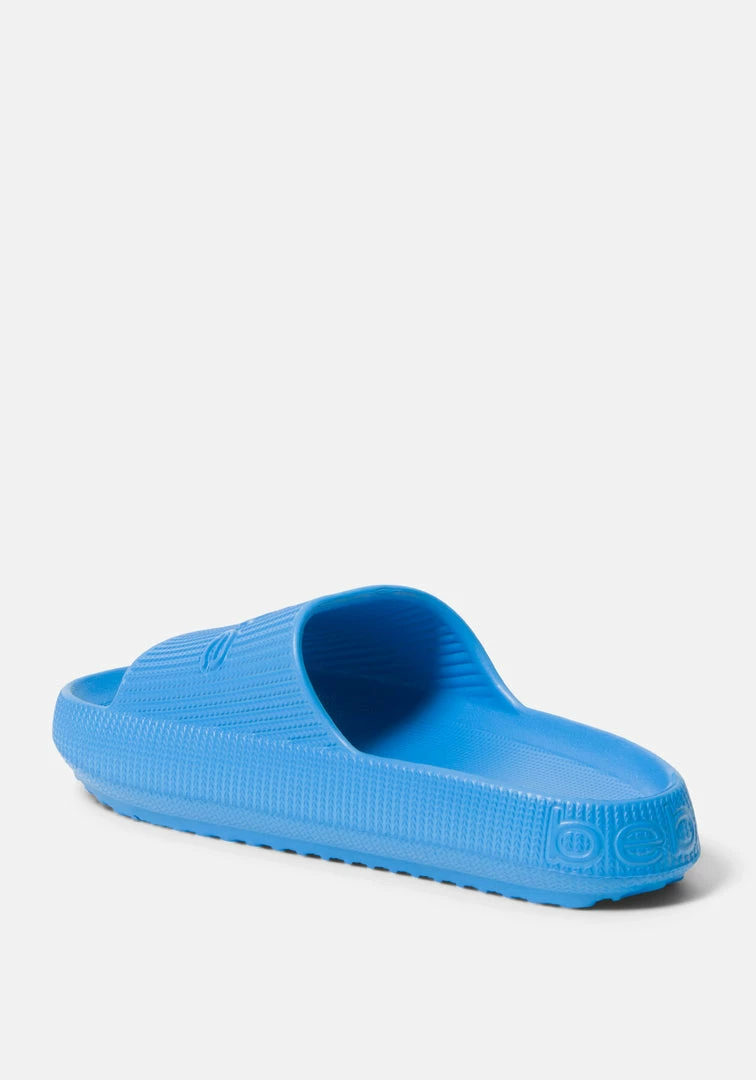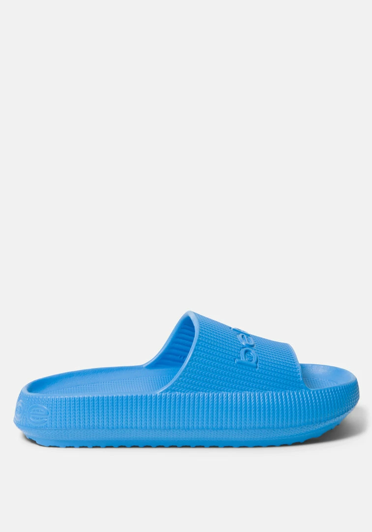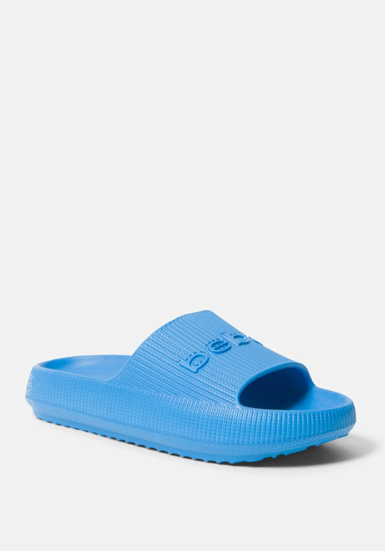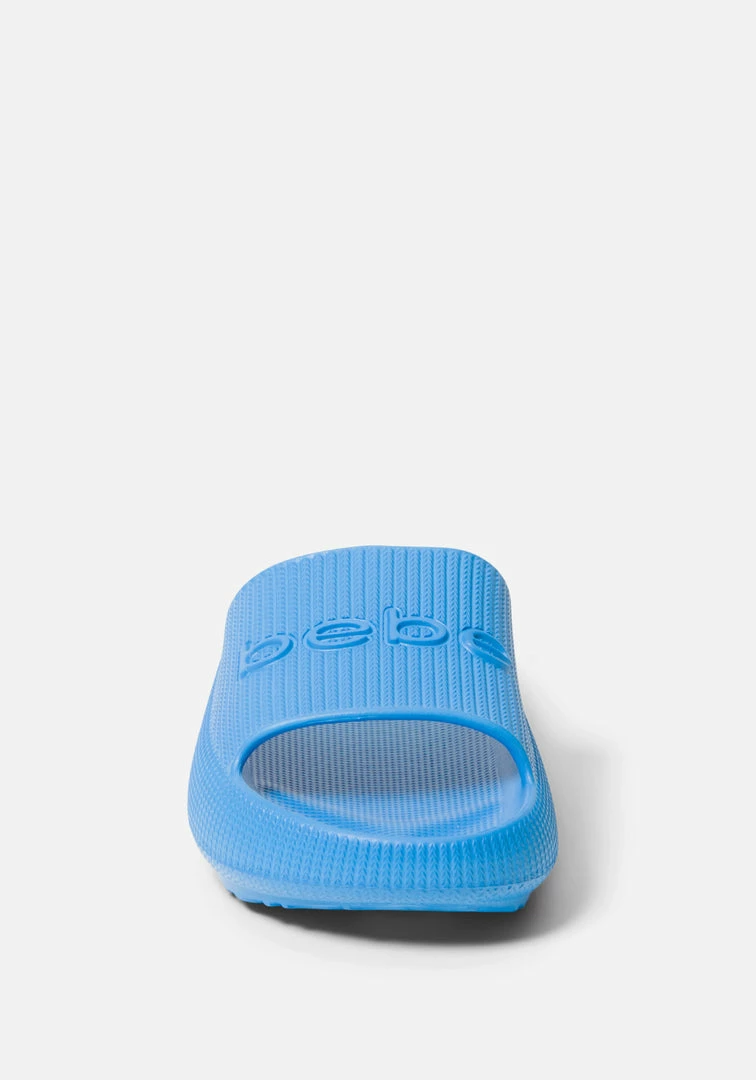 This slip-on style is made with a cushy material, while an embossed Bebe logo on the strap lends a hint of eye-catching appeal.