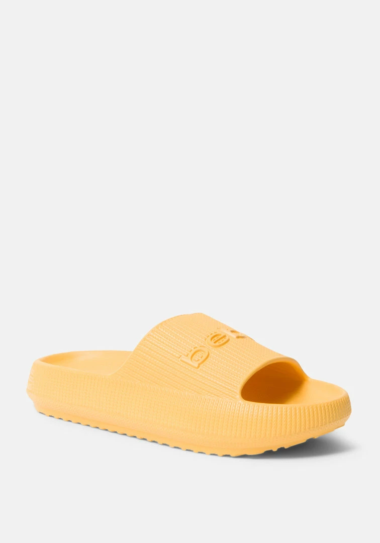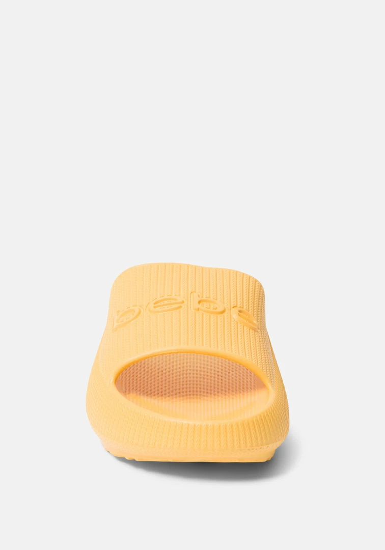This slip-on style is made with a cushy material, while an embossed Bebe logo on the strap lends a hint of eye-catching appeal.