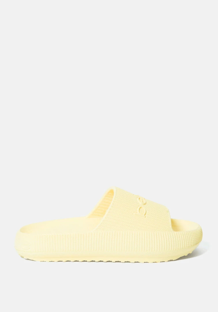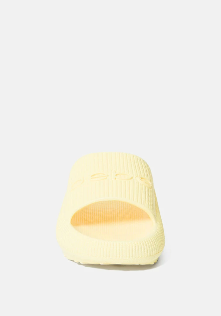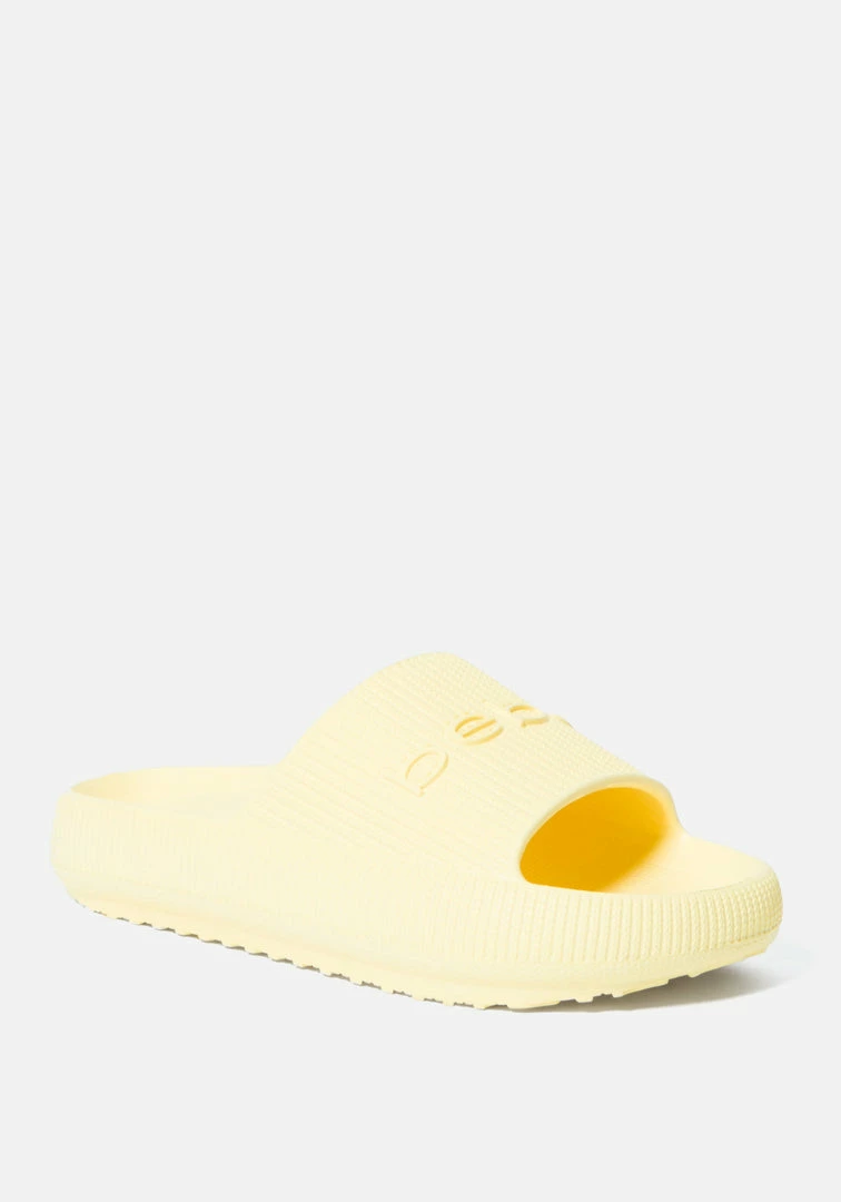When it comes to these sandals, comfort is key. The slip-on style is made with a cushy material, while an embossed Bebe logo on the strap lends a hint of eye-catching appeal.
