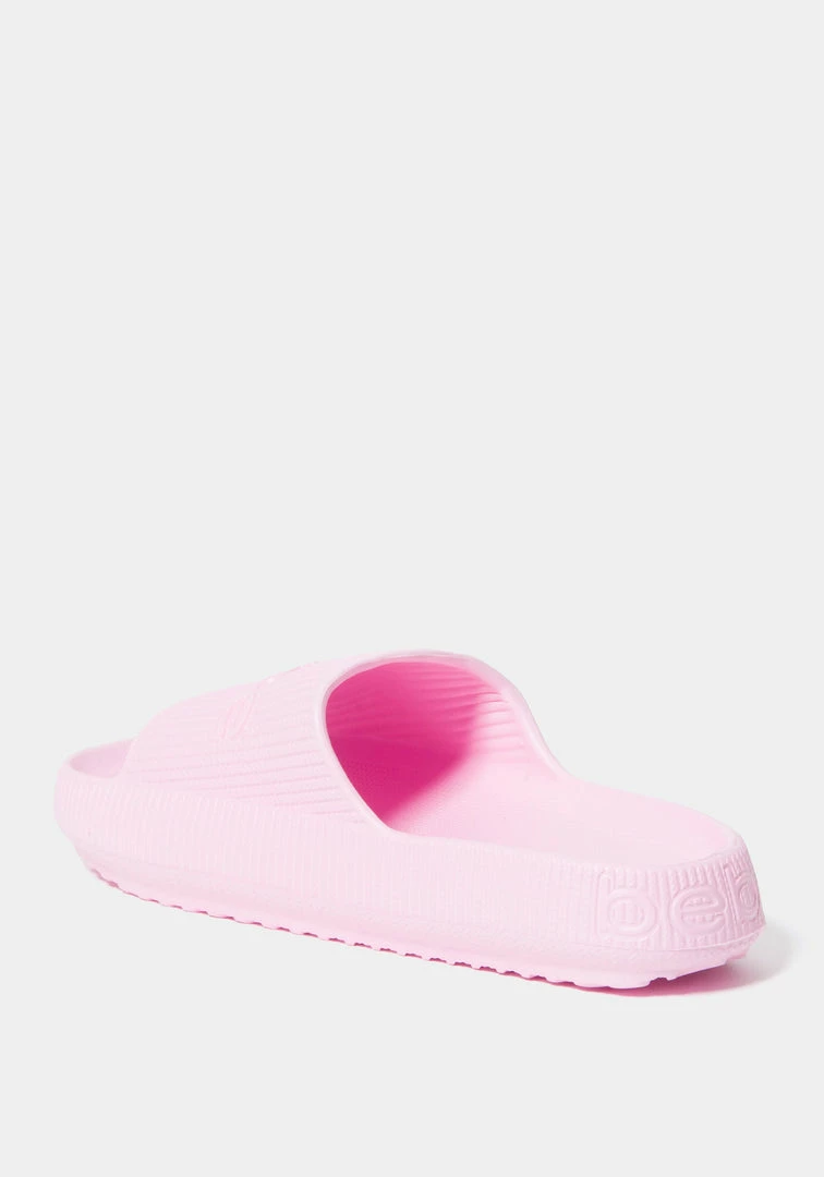 This slip-on style is made with a cushy material, while an embossed Bebe logo on the strap lends a hint of eye-catching appeal.