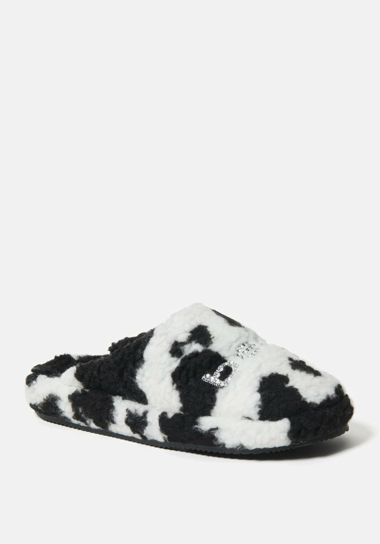 Got cold feet? Snuggle up in this luxe Molly faux Fur Slipper featuring a studded Bebe logo and soft, plush footbed.