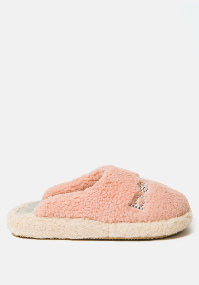 Got cold feet? Snuggle up in this luxe Molly faux Fur Slipper featuring a studded Bebe logo and soft, plush footbed.