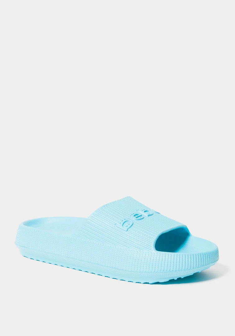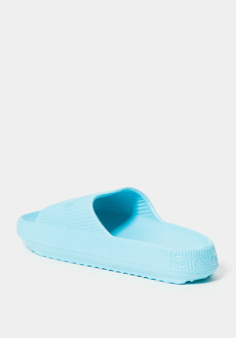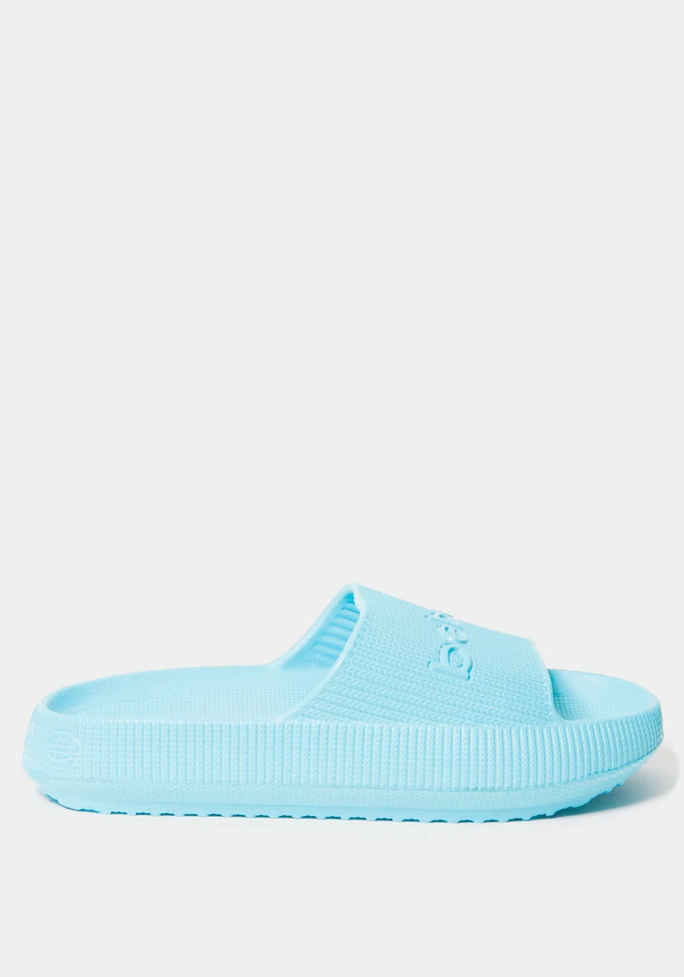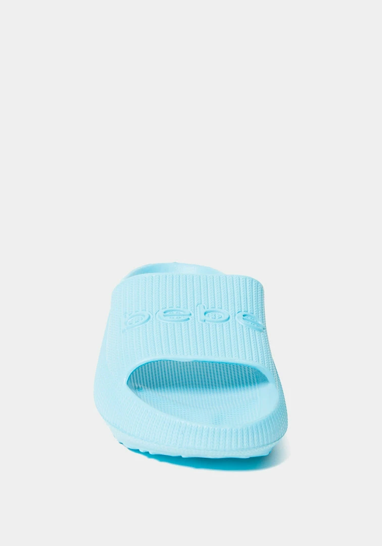This slip-on style is made with a cushy material, while an embossed Bebe logo on the strap lends a hint of eye-catching appeal.