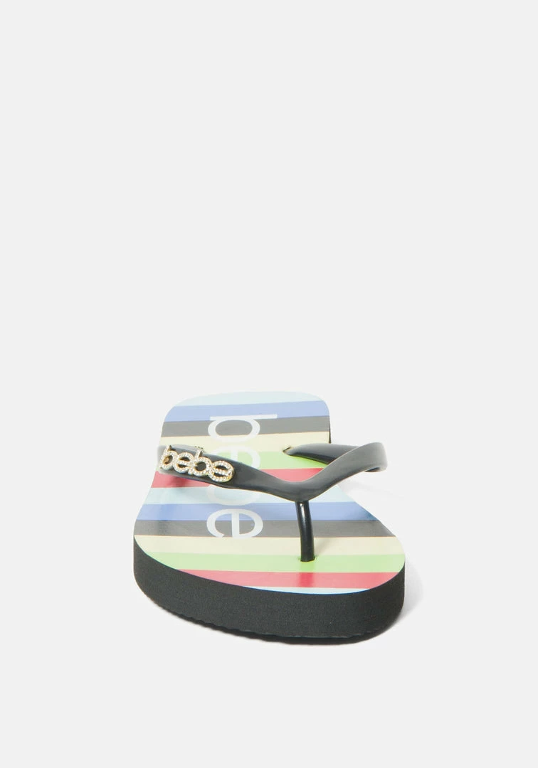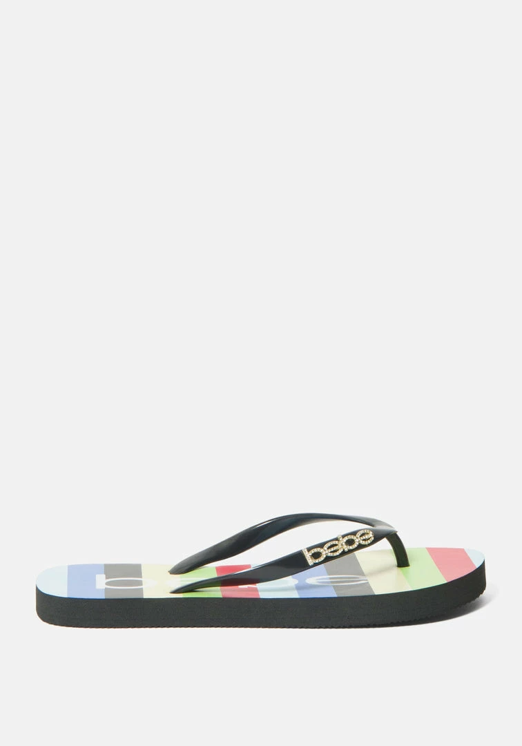 These cute, easy-to-wear Bebe Mindee Flip Flops are perfect for running errands or any casual outing, featuring logo straps that secure the sandal while providing a chic and comfortable style.