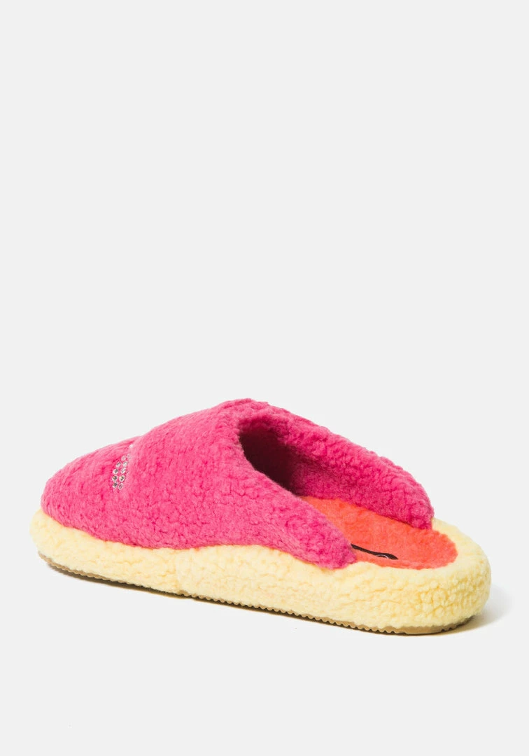 Got cold feet? Snuggle up in this luxe Molly faux Fur Slipper featuring a studded Bebe logo and soft, plush footbed.