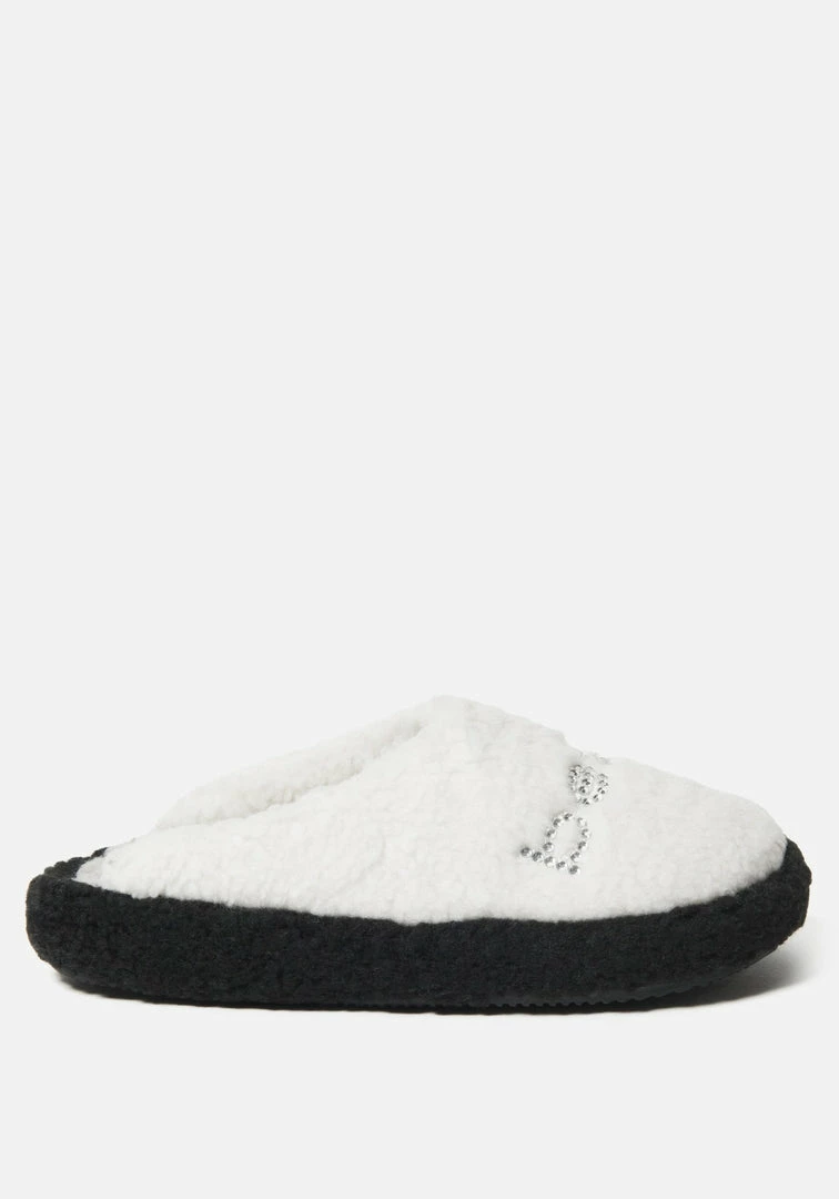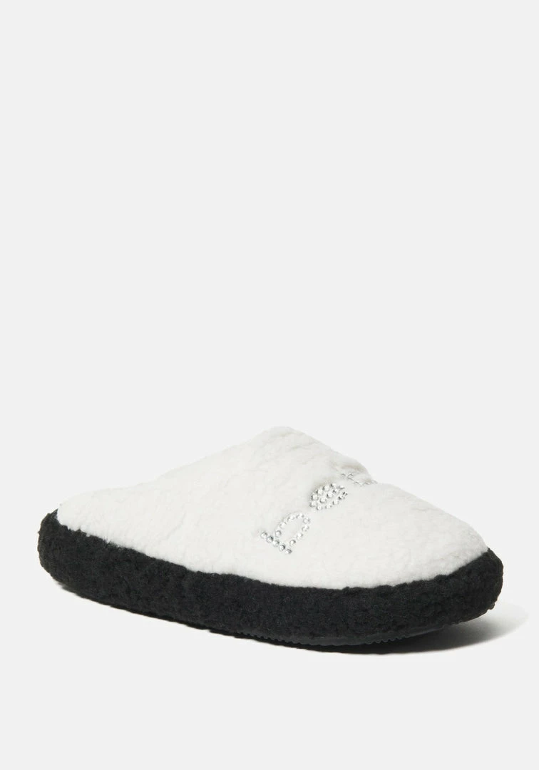 Got cold feet? Snuggle up in this luxe Molly faux Fur Slipper featuring a studded Bebe logo and soft, plush footbed.