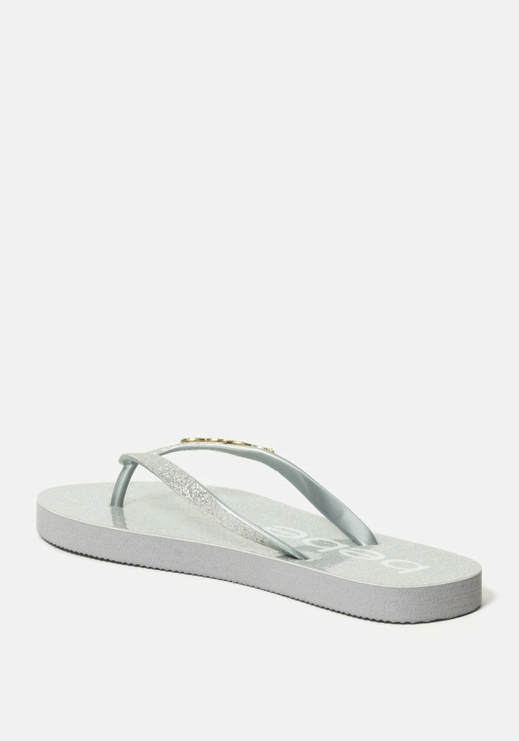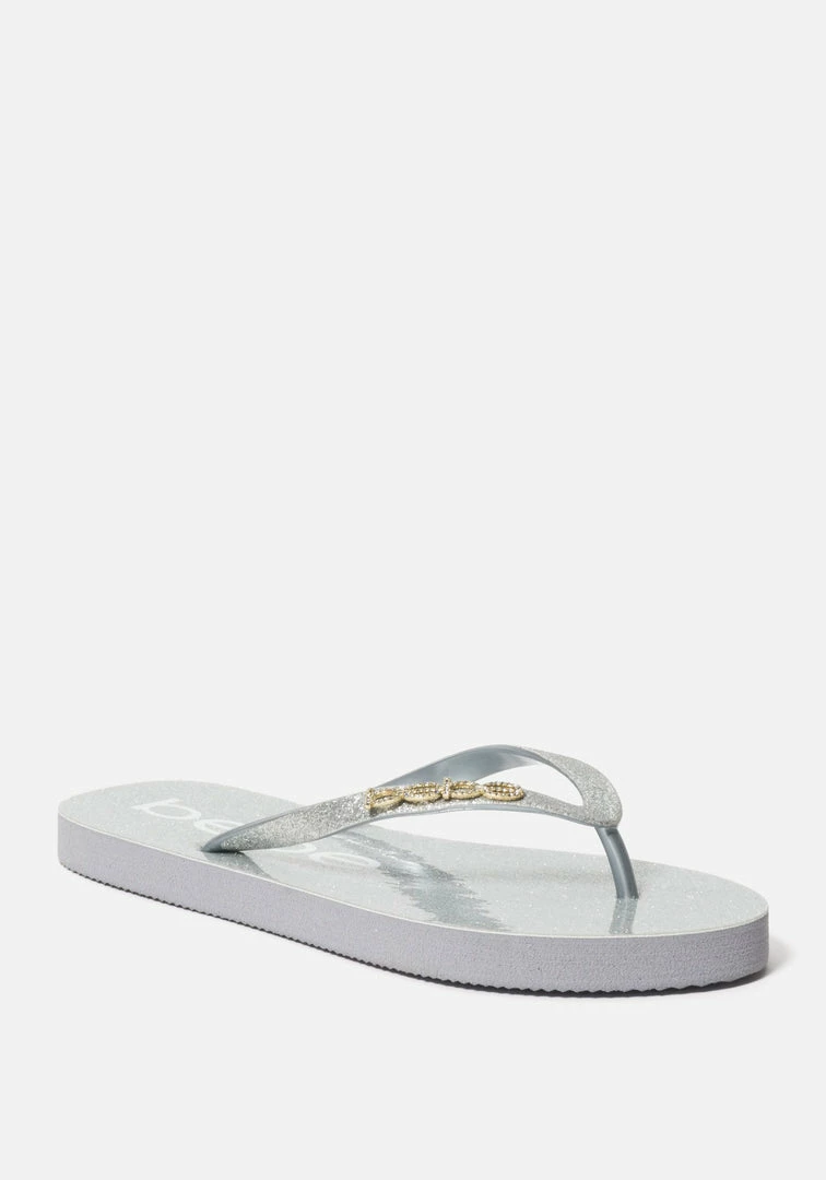 A soft and flexible flip-flop serves as a versatile essential perfect for running errands or lounging. Metallic details make this sandal a must-have.
