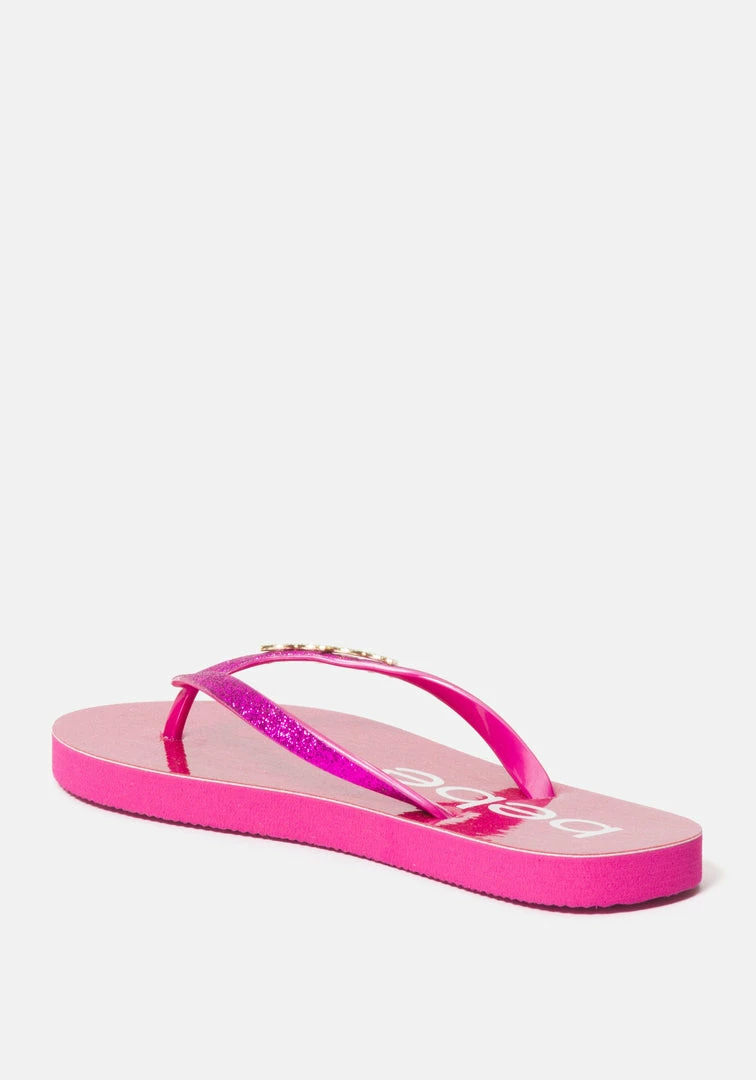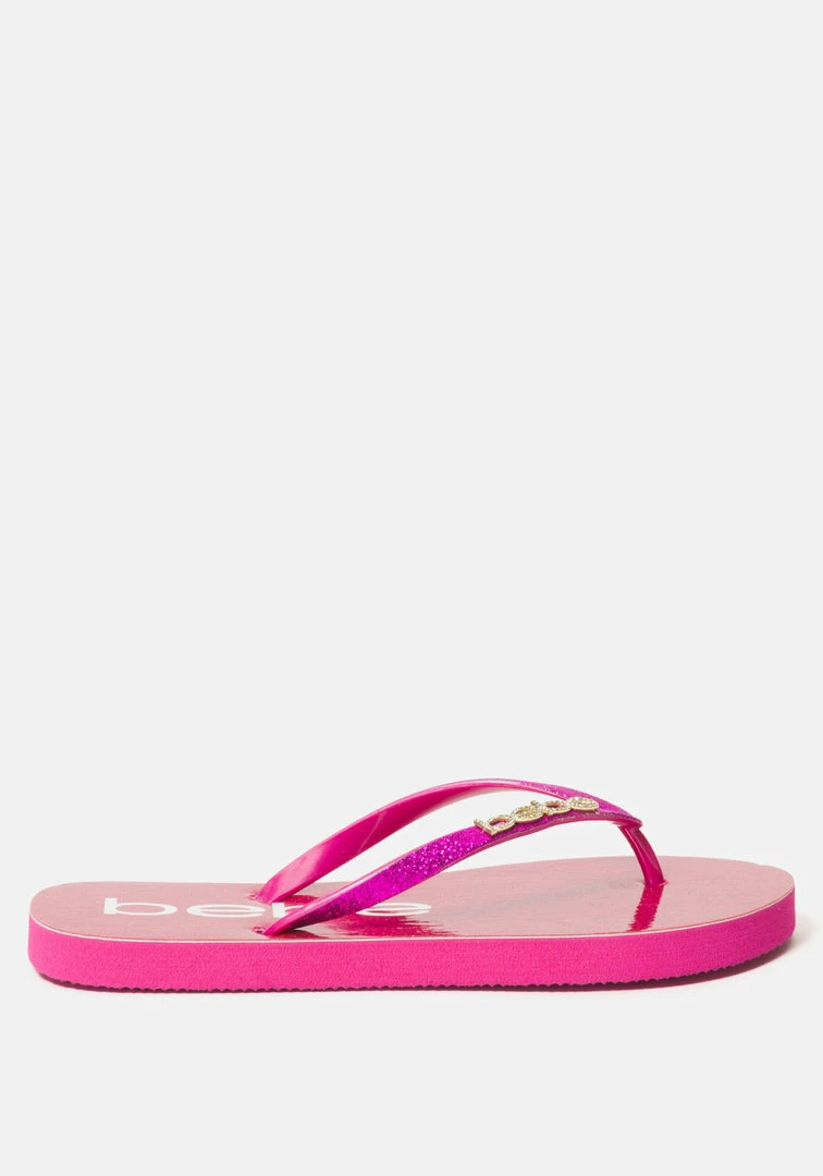 A soft and flexible flip-flop serves as a versatile essential perfect for running errands or lounging. Metallic details make this sandal a must-have.