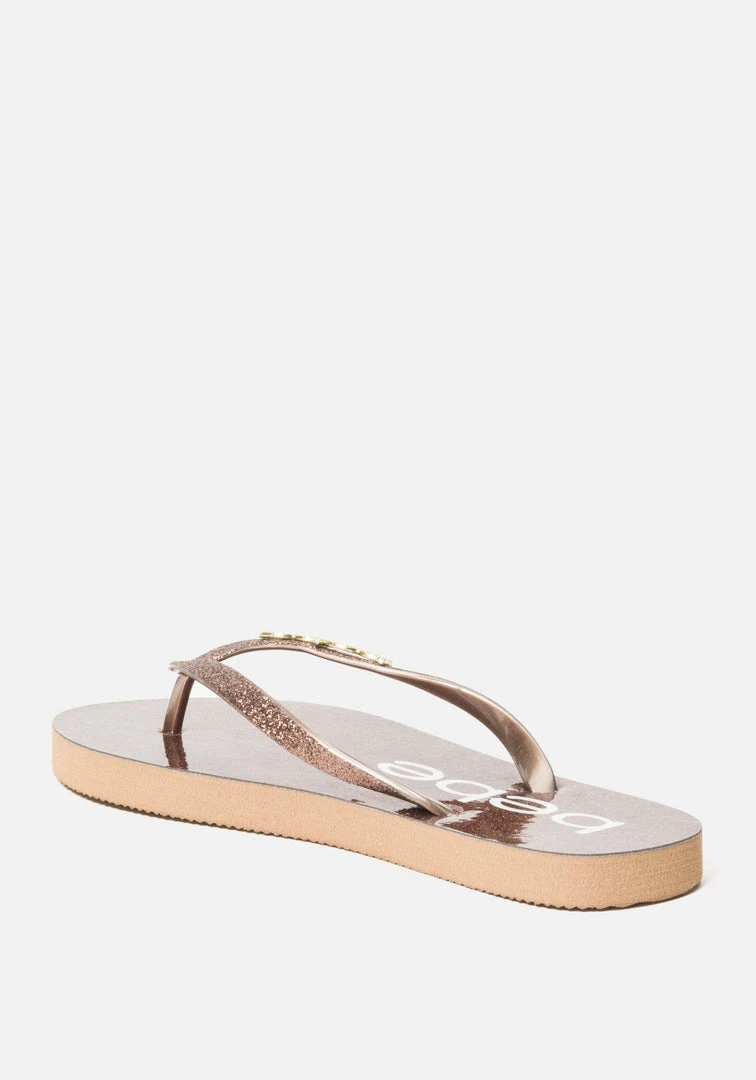 A soft and flexible flip-flop serves as a versatile essential perfect for running errands or lounging. Metallic details make this sandal a must-have.