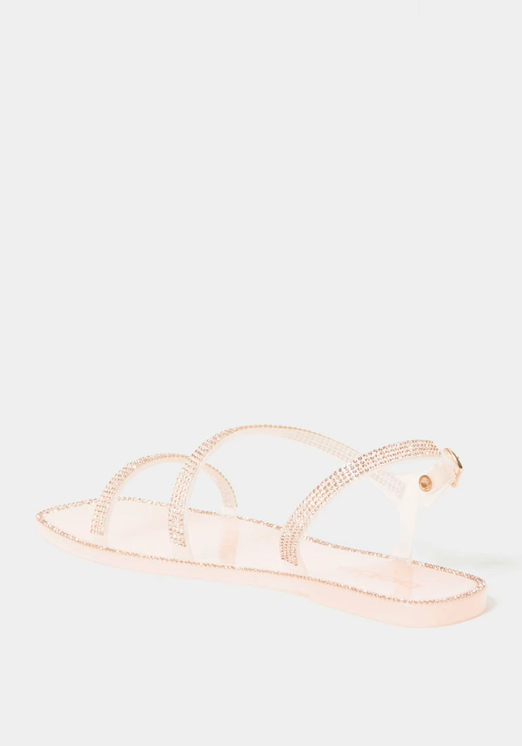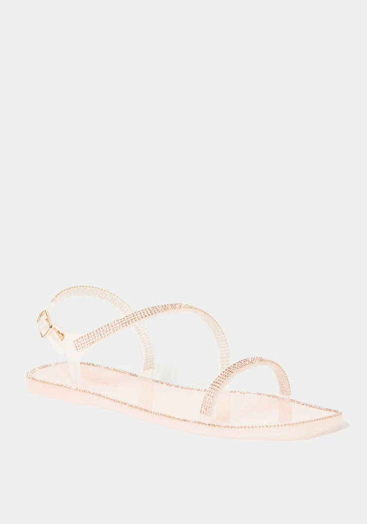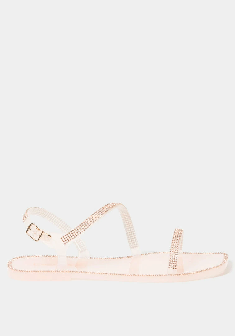 Throw on the Jillie slides to complete your casual look! Featuring rhinestone details, a flat heel, and ankle closure.