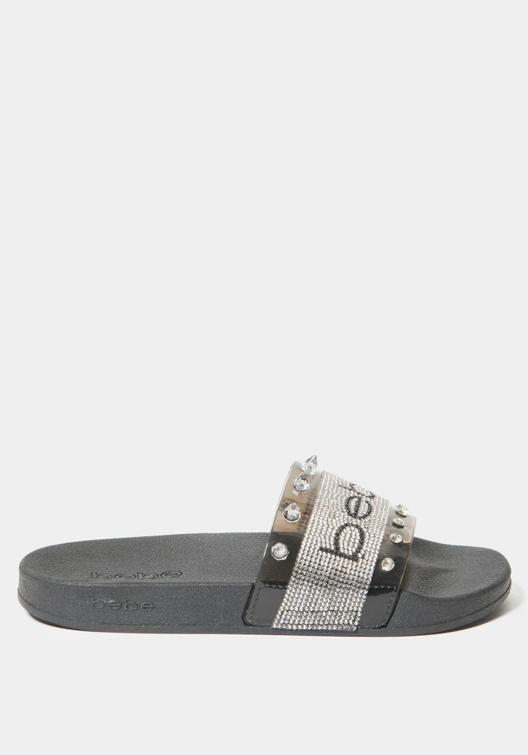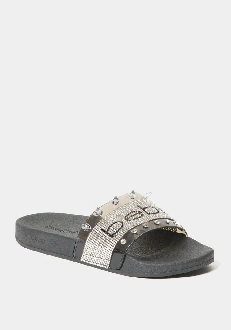 Wear the Sanilah slide by the pool or to run errands this summer! Featuring an anatomically shaped footbed and glass rhinestone bebe logo on upper.